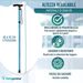 PIEGHEVOLE E ESTENSIBILE: Grazie al suo design pieghevole ed estensibile, questo bastone in alluminio è ideale per spazi ridotti o per essere facilmente trasportato in viaggio. Adatto alle esigenze quotidiane di chi cerca un bastone pratico.
