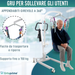 Questa grù per trasporto pazienti è indicata per persone con mobilità ridotta, che necessitano di assistenza per sollevare e trasportare gli utenti tra letto, sedia a rotelle, o poltrona ortopedica. Per un uso sicuro della grù per disabili, assicurarsi che il peso del paziente non superi i 150 kg. Posizionare correttamente l'imbracatura di comfort con supporto per la testa, aprire i piedi della gru con il pedale, posizionare i freni e azionare il comando per sollevare o abbassare l’utente. Per una manutenzione ottimale è fondamentale controllare periodicamente i freni, le ruote, il livello di carico e non utilizzare la grù su superfici instabili.