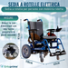 La sedia a rotelle elettrica offre comfort, autonomia, mobilità assistita e accessibilità totale. Progettata per garantire il massimo in termini di mobilità assistita e mobilità ridotta, questa sedia a rotelle elettrica pieghevole e compatta è dotata di motori brushless 2x340W, propulsori brushless e batterie al litio 2x41Ah che consentono di raggiungere i 9 km/h e offrono un’autonomia di 32 km e prolungata. Sedia a rotelle elettrica ergonomica con display digitale, pannello LED intelligente, joystick ad intensità progressiva e controllo preciso per una guida facile, mentre il telaio in alluminio leggero, la struttura pieghevole multifunzione e il design compatto e portatile garantiscono portabilità, stoccaggio semplice e trasporto agevole.